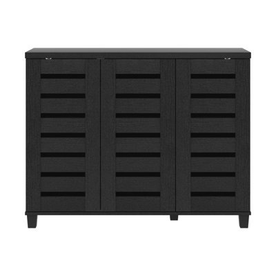 Create an accountTransform your entryway with the Shoe Cabinet, a contemporary storage solution that blends modern design with everyday functionality. This shoe storage cabinet features a three-door design that neatly conceals up to 20 pairs of shoes, keeping your space organized and clutter-free. Its eight adjustable shelves can be positioned flat or inclined to accommodate different footwear styles, while slatted door panels promote airflow to maintain freshness. Raised legs allow easy floor cleaning and create a light, elevated look. Available in white, black, brown, green, gray, and beige, this modern shoe cabinet enhances any entryway storage setup with clean lines and practical appeal.