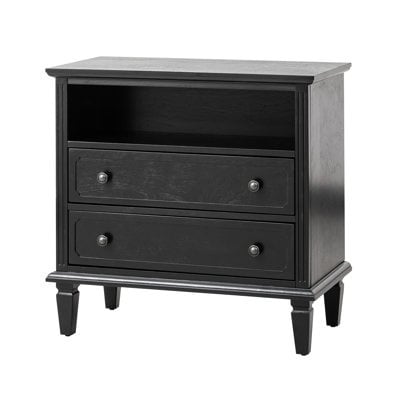 Create an accountThis 28.25'' end table adds a classic look to your sofaside while providing storage and convenience. Made from kiln-dried solid and engineered wood, it showcases a rectangular shape and a finished back for versatile placement. This end table features two dovetail-joint drawers with ball bearing glides, interlocking design, and a 20 lb. weight capacity each. A built-in electrical outlet and USB port keep your devices charged and within reach. We love that its stainless steel handles are removable for a customizable look. Plus, there's a lower shelf for additional storage or display.