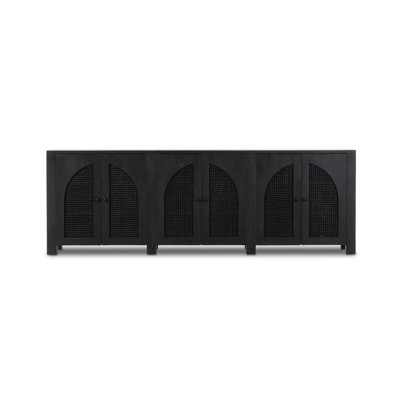 Create an accountIntroducing a stylish storage solution that combines elegance and practicality. Expertly crafted from high-quality solid mango wood, this exquisite sideboard showcases six elegant arch cutout doors, adding a touch of sophistication and charm to its appearance. Inside, it boasts nine interior shelves, providing ample space to store and organize all your essentials. Its modern sleek design, characterized by clean lines and a minimalist aesthetic, effortlessly combines form and function, making it a standout piece. Not only is this sideboard versatile in its use, fitting seamlessly into various spaces and decor styles, but it also serves as a stunning focal point in any room.